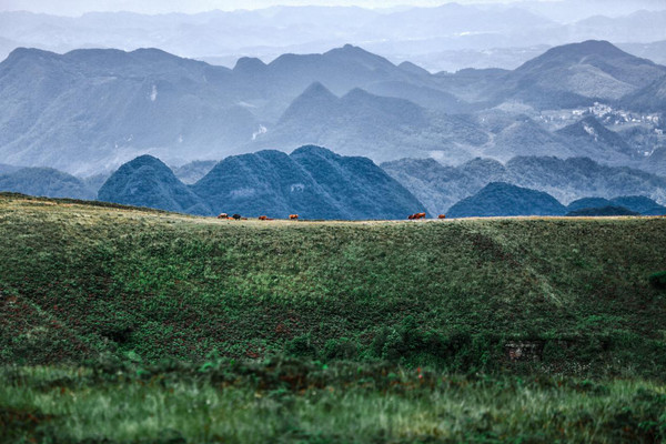 7个超大型天坑组成了北斗七星的形状,处处有峰林、有岩溶、有洞穴、有地缝。远处的万峰林,一日风云十八景,或黛或蓝、或苍或翠,不知何画可媲美此景。