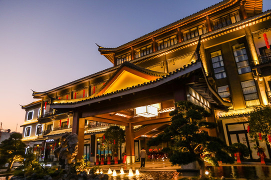 走过长廊,就是酒店的大堂。酒店的大堂颇为气派,但却没有媚俗的感觉。在大堂仔细走走,红漆门上的铜钉和铜 狮子 门环,抑或是那落地孔雀宫灯,都带着浓浓的传统的味道,那些 江南 的故事, 江南 的细腻,仿佛就这么穿越了时光,来到眼前。