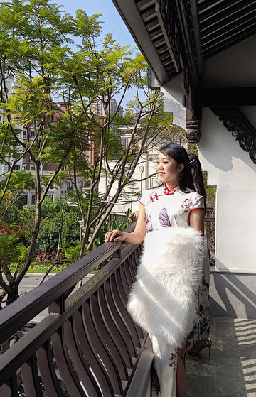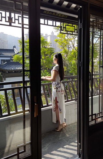房间的阳台视线很好,早晨的阳光照过来,穿着单薄旗袍的美女依靠在栏杆边惬意地享受着冬日暖阳的抚摸,眼光凝视着远方,好像在等待着什么?