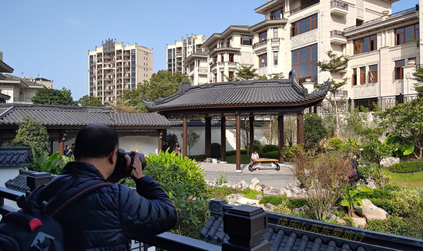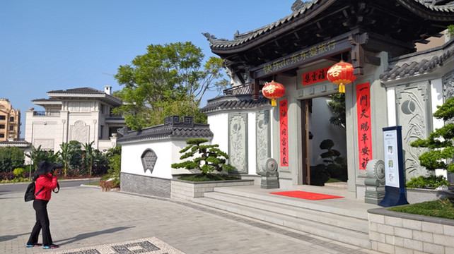 客家院子位于梅州客天下的欢乐小镇旁边,距离客天下的客家小镇仅1公里,距离梅州圣品沉香博物馆仅1.8公里。客家院子是新建的集宋朝建筑风格和江南苏州园林庭园风格于一体的仿古建筑群,其独特的建筑风格和美丽的庭园绿化吸引了不少人去游玩。我们一家人第一次到达客家院子时,看到几群男女老少摄影师拿着长枪短炮、微单、手机等摄影工具在里面尽情拍摄,贪婪地记录着这美丽的风景。