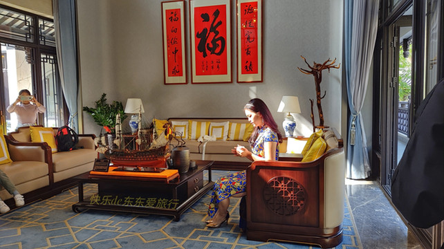 房屋里面,仿古家具的摆放和墙上的装饰也都十分雅致。不管是居家生活,还是接待朋友都不失身份。