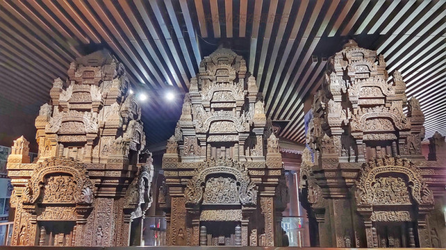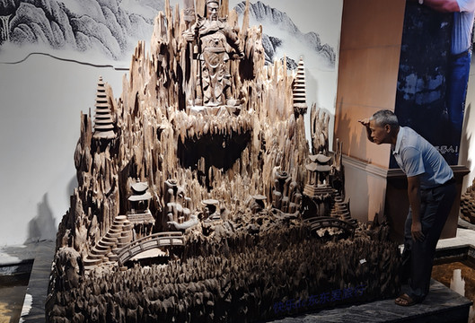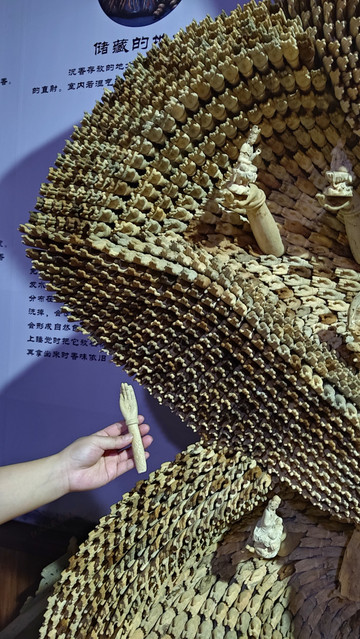 吴哥窟:沉香木雕“吴哥窟”采用越南产的千年沉香原木,经越南木雕大师耗时3年仿照柬埔寨的吴哥建筑群按一定的比例缩小精工雕刻,运到梅州拼接而成,展现了东方四大奇迹之一的柬埔寨标志性建筑——吴哥古建筑群的真实风貌,让国人不出国门也可以领略吴哥窟的风采。