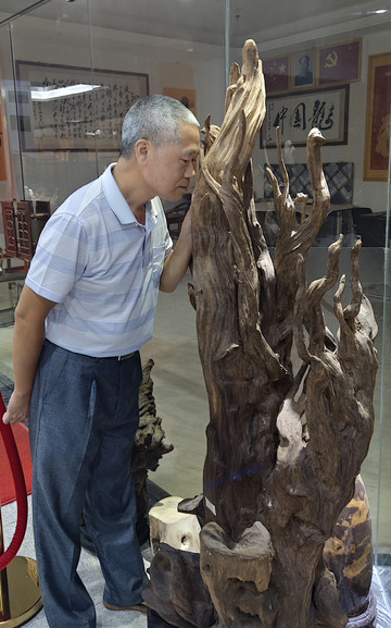 另外,展馆内还展出了不少未经加工的奇形怪状的沉香原木,这些沉香原木颜色较深,香气自然,也受到参观者的喜爱。