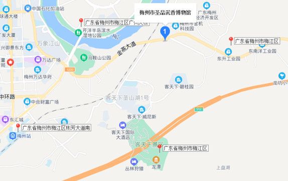 梅州圣品沉香博物馆位于梅州市东升工业园区斜对面,距离梅州火车站仅3.9公里,距离梅县机场6.3公里,距离客天下欢乐小镇仅1.8公里,距离客天下客家小镇约2.5公里,距离中国客家博物馆仅7.7公里,距离广州大桥仅2.2公里。到达梅州市后,在高德地图上搜索“沉香博物馆”即可导航到目的地。