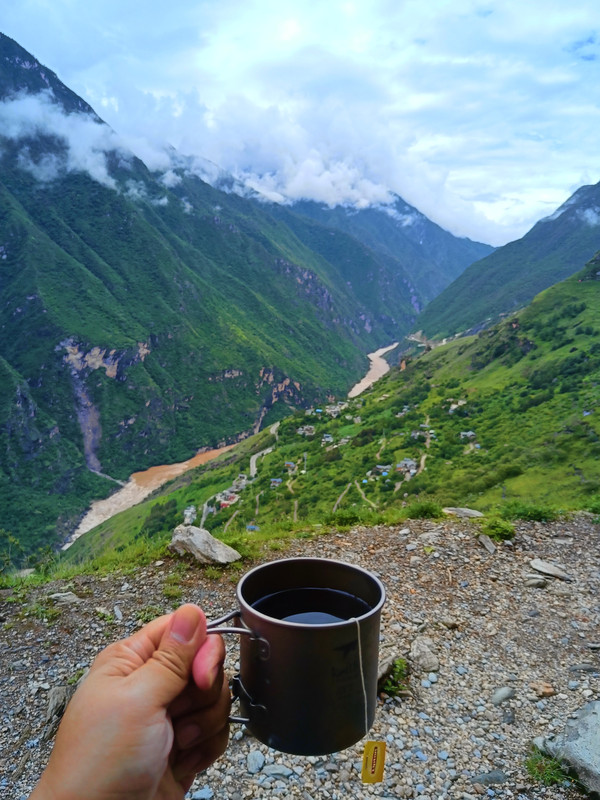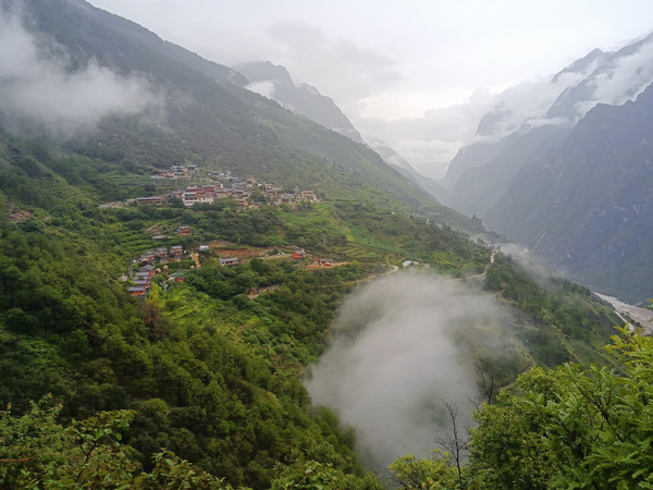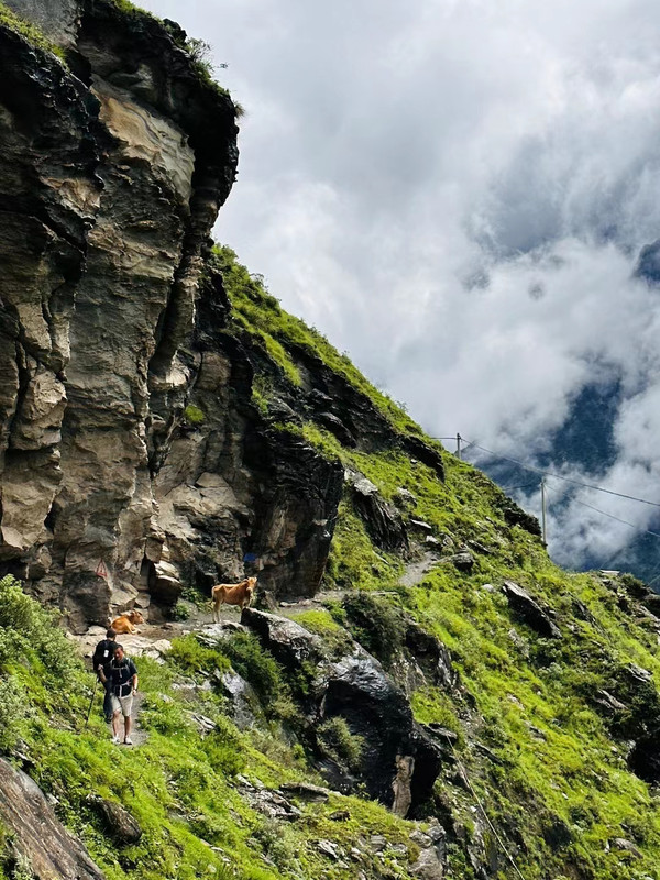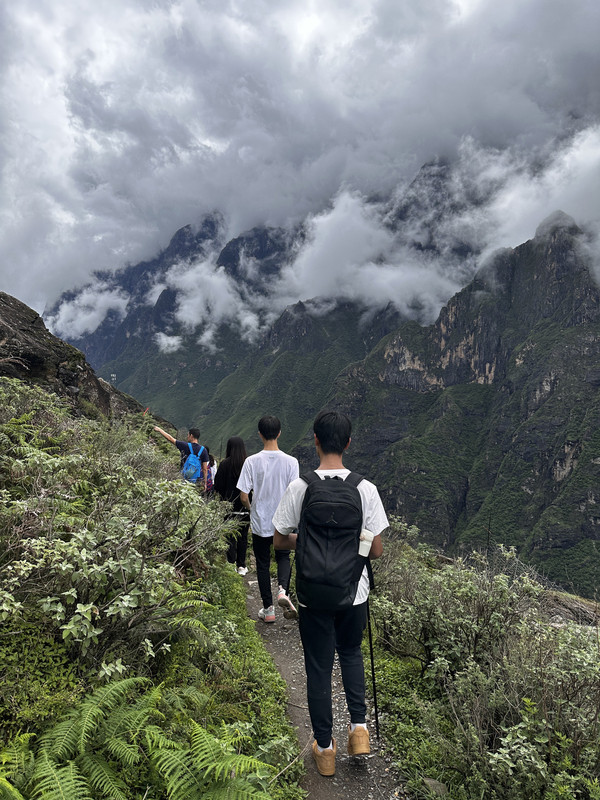 住落,趁雨细,按计划逆行高路线路约1公里,到达“冰粉”处就返转头,当做热身。雨后既玉龙、哈巴,烟雾缭绕,另有一番美态,全队人既兴致都开始上晒嚟并KEEP住系10几日既旅程度。