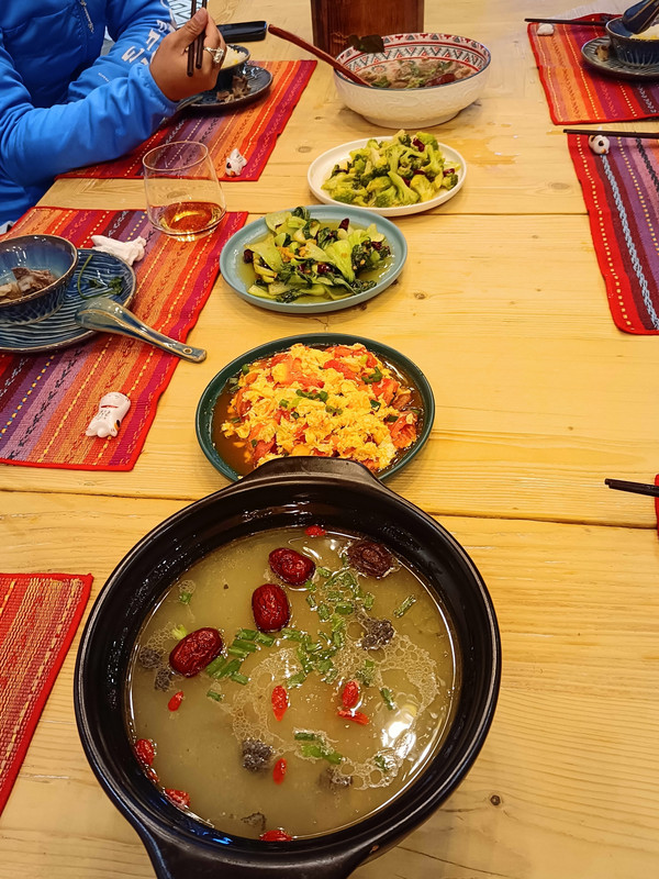 呢间客栈主要由老板娘打理,洛桑大哥分管梵尘德拉野奢营地。老板娘提前同我沟通,约好晚饭人数同时间,我地一到客栈就可以上餸喇,色香味都有,见我带酒,佢仲请我试下佢闺蜜好中意既当地酒添。客栈既庭院好大,晚黑闻住好香既焖牛腩(第朝早餐),听歌叹茶,睇老板娘好认真甘同听日爬哈巴雪山的客人上课。