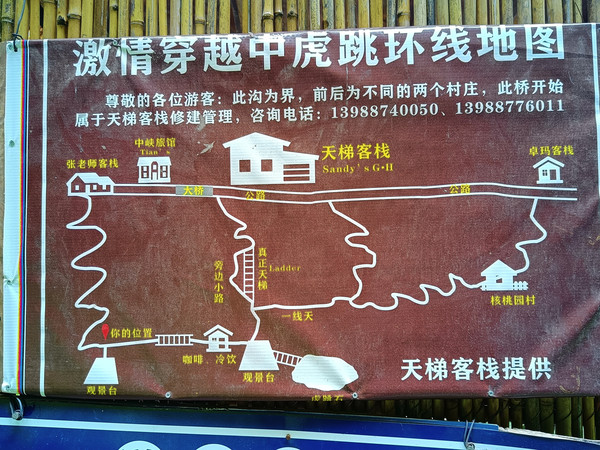 落左高速,过松园桥,系西景线路边既幺妹鲜鱼馆食晏(条鱼小贵)。到虎跳峡大桥(腾讯地图,高德冇显示桥名)果阵,被告知景区因近段时间雨水多水量大封闭左,唔俾过桥(跟住上网搜下,原嚟10点半就封左,怪唔得唔塞车啦)。我地继续向前开,过桥头中桥(腾讯地图)后停落嚟打电话俾客栈老板娘,佢话可以入去。前后经过三道保安,话系去山美或者直接同客栈通话后都放行,连景区门票都冇得收我地既(两次嚟都冇入景区,不过19年果次就正常情况下路过都要俾钱)。