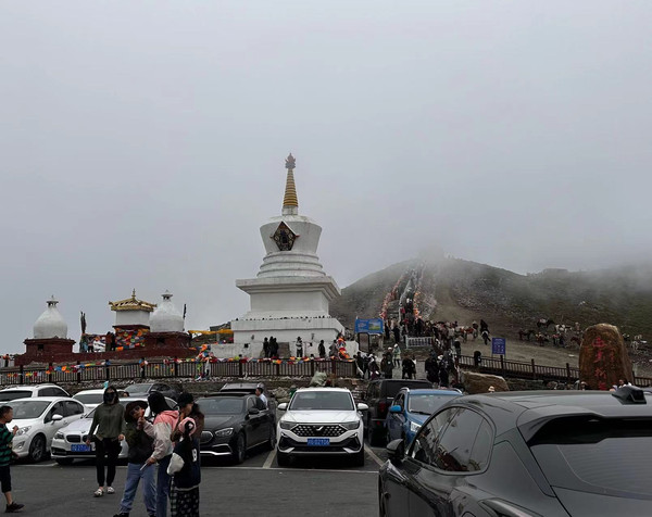 15号,7点出发, 系天路18弯度,因为多车停系路边,加上有人逆行,塞左半个钟,其余路段一路畅通。经过康定机场,岩好见到飞机降落。折多山好多人、好大雾,没有停留。差唔多三点到康定情歌广场,江边马路无得停车,开去入边果排就有位。影张相、食个火锅就出发都江堰,八点入住百伦国际酒店(住两晚、推荐),楼下商场晚饭。