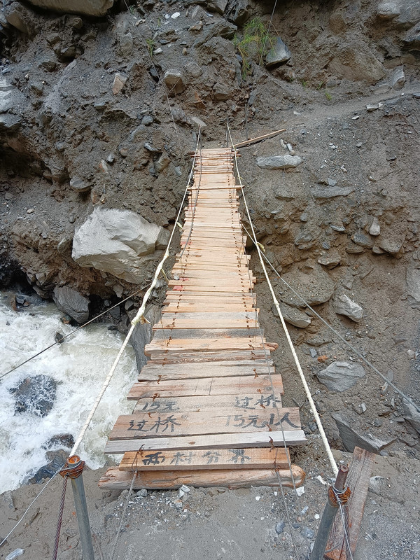开左半个钟,就过左尼农桥,见到废弃左既尼农吊桥同滑索,我系地图度留意左呢度好耐,今次系专登过嚟,冇失望,好壮观,再往前唔远,就系去雨崩既路口。