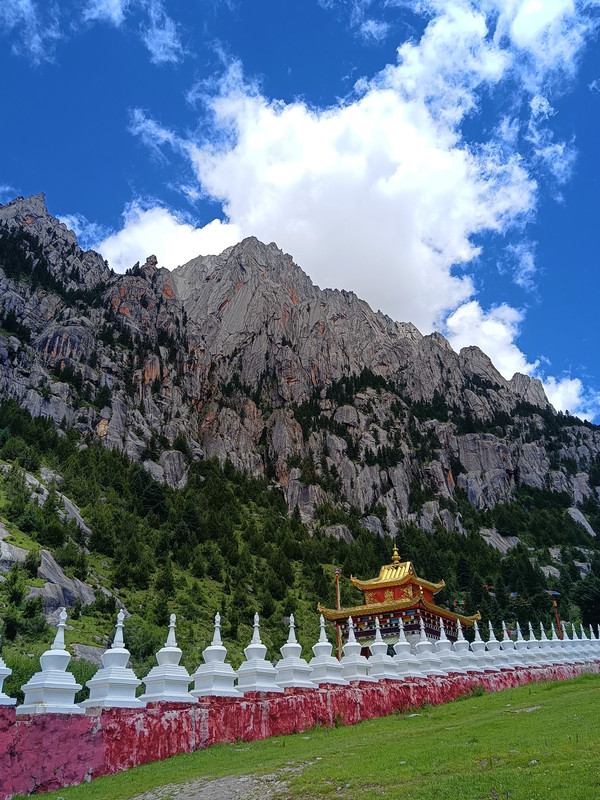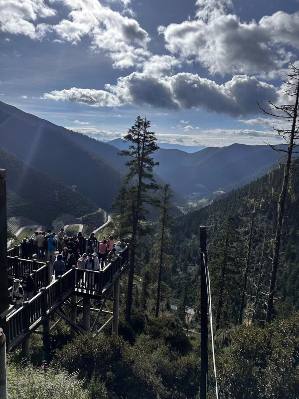 游览措普沟景区,好惊喜,强烈推荐。原来系可以自驾入去既,不过要提前一天系景区小程序预约。我地唔知道,所以系携程订左票,游客中心大巴,好少游客,坐13公里先到达景区入边,整紧路,要开半个钟。天气好正,章德草原系后面既扎金甲博神山映衬下,色彩艳丽、好壮观,顿时觉得无拣错地方,加上果度仲栋住个318路牌,好够FEEL。大巴剩系去到措普湖,跟住可以选择坐电瓶去到最上面既措普寺,跟住顺住行返落黎睇两个细湖同措普湖,完全超越普达措、挥得住九寨。
