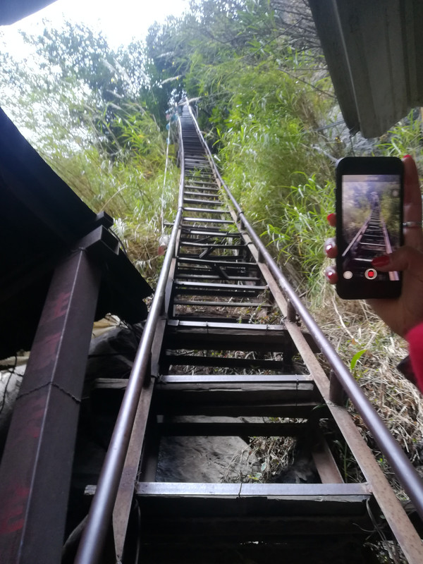 大约一点钟到左HALF WAY食饭(唔贵、味道麻麻)、系“爽死你阳台”摆拍、“帮衬”天下第一厕。继续出发,阳光之下,沿路景色非常漂亮、色彩丰富。到观音瀑(畀相老板娘睇,佢话叫观音瀑。瀑布之前既果段路最窄,系最危险既)既时候,因为水大,冲住左条小路,加上瀑布前既碎石坡都好危险(应该有小小塌方),我地就返转头嘞。返到中途客栈,系阳台酒吧饮下啤酒、咖啡。果度间士多会提供租车师傅既电话,叫左两台车(150一台)送我们返山美。呢段徒步实际唔够10公里,基本系平路,唔会太难,带樽水就可以行得果种。