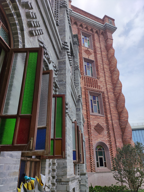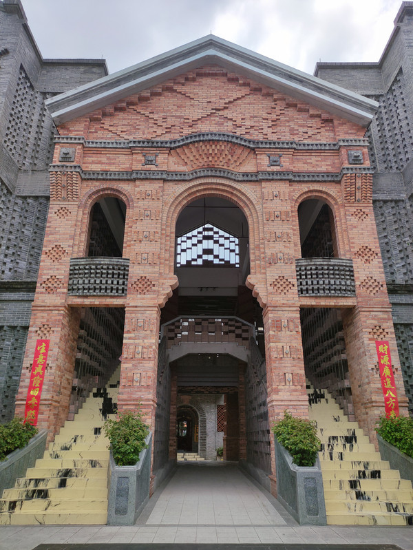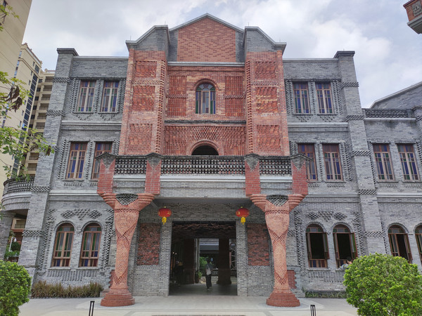 赤坎侨小馆位于赤坎镇新区A1~1号,是一个建筑景观一体化的庭院式骑楼组群商业综合体。赤坎侨小馆以“三清三拆三整治”过程中产生的青砖、红砖为建筑材料,融合岭南传统建筑元素,采用花式砌法与传统建筑建造工艺进行创作,致力于将侨小馆打造成为集商业、旅游观赏价值于一体的理想社区。