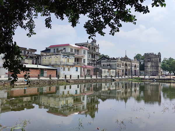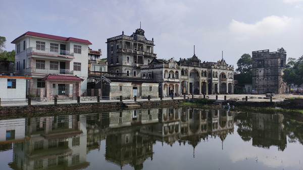 开平的乡间,村口均有榕树、池塘,风水元素也。