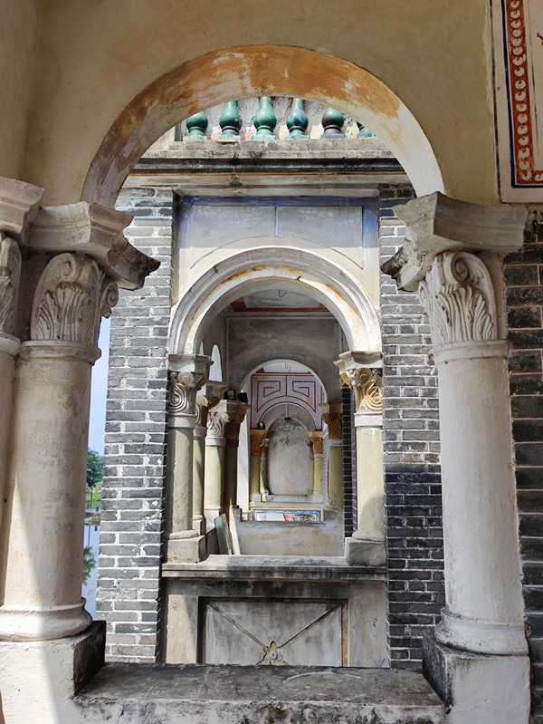 谢存在带领我们参观仓东村的标志性建筑物——侯成谢公祠与秉文谢公祠。两祠 皆重建于1934年。侯成谢公祠为纪念仓东村谢氏三世祖、始祖荣山公之孙侯成公而建;秉文谢公祠为纪念仓东村谢氏十一世祖秉文公而建。二十世纪初,仓东村中先后建起了焕业楼、安业庐及周边的碉楼建筑,有碍风水,仓东谢氏后裔于是发起捐款重建,建成中西合璧的祠堂学校。