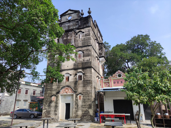 开平赤坎中股村的碉楼,沿途经过的每一个村庄都有碉楼,建碉楼原意是抵抗盗贼之用。