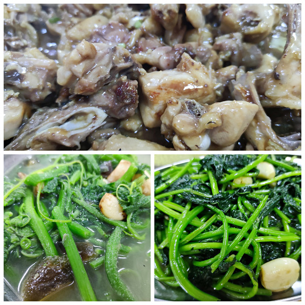告别仓东村,下一站是赤坎侨小馆,途中经过百合镇齐塘村悦兴农家饭店,一个不起眼的小饭店,正是午饭时间,顾客不少,我们在这里享用了一个美味的原生态的午餐(145元),一大盘圆盘沙姜鸡、两盆农家菜、还有一盆送例汤,妥妥地征服了我们的胃,乡下的菜品分量就是足够大呀!