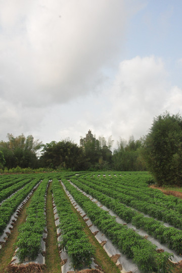 由于酒店附近吃早餐不方便,还凭老经验,到那里下车再说。在门前乘613路公交在岘岗桥头下,岘岗是一个镇,没想到下车处十分偏僻,竟然没有一家早餐店,没有办法,好在身上还带点吃的,先垫垫再说。下车处距锦江里景区还有两公里左右,不过桥沿河北往右一条小路直走即可,由于没有路标,结果我们过河走南边又绕回北岸,走了一段冤枉路,经询问路人,才重新走上正道。虽然是步行,稍有疲累,不过路上的风景的确让人欣慰。路过的村庄和田野,满地绿意葱茏,碉楼不时浮现,有村民在田地里劳作,天气也一扫几天来的晦气,蓝天白云,令人心旷神怡。