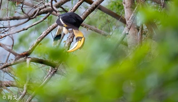 而EOS-1D X Mark III在拍摄过程中对焦系统会很智能的判断出前景的物体是否为障碍物,所以当它飞出遮挡的树枝的那一瞬间,焦点仍能牢牢的锁定在犀鸟的身上,这样的对焦能力对于森林中的生态拍摄来说,可谓是“有如神助”。