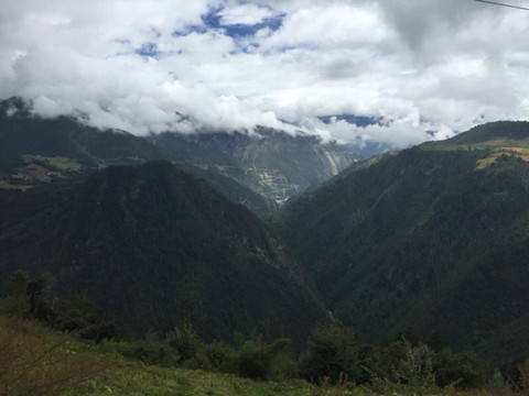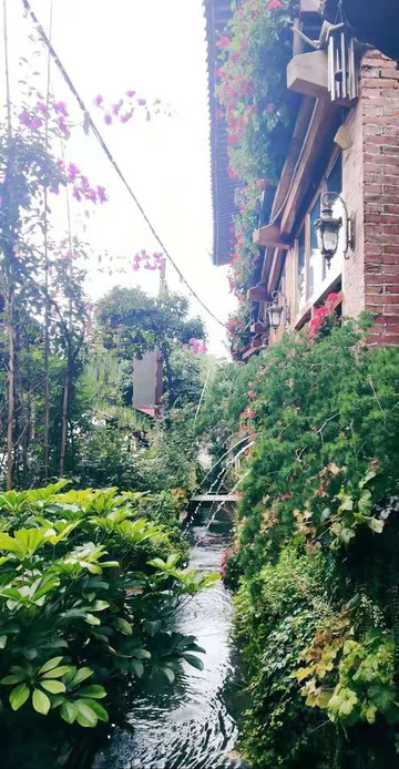 ·古镇后山是玉龙雪山的余脉,山峦青秀缠绵,林木苍翠。