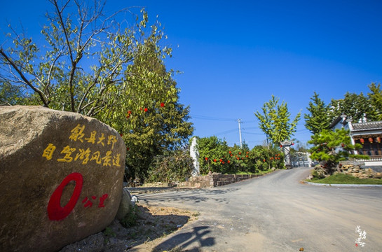 歙县大野自驾游风景道0公里标志石刻碑。