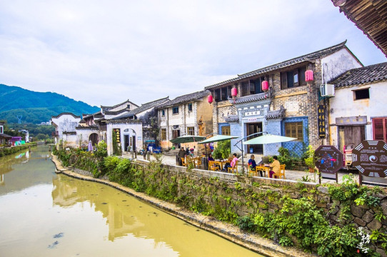 游览唐模便可以沿着流经村落的檀溪而行,在这条小河的两岸,都是用青石铺成的老路,这条路也被称为“唐模水街”,在水街的两边既有民宅也有商铺,南门北户隔水相对,面河而开。