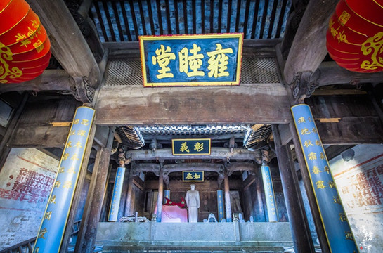 罗东舒祠也称宝纶阁,始建于明嘉靖年间(约1542年),古祠分前、中、后三进,第一进为仪门,仪门内是八丈见方的天井,第二进为大厅,最后一进才是整个祠堂的精华部分宝纶阁。相传主持续建此祠的罗应鹤,明万历间曾任监察御史和大理寺丞等职,深得明神宗庞信。罗“盖之以阁用藏历代恩纶”,故名“宝纶阁”,后约定俗成地称整座祠堂为“宝纶阁”。