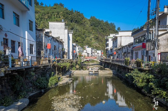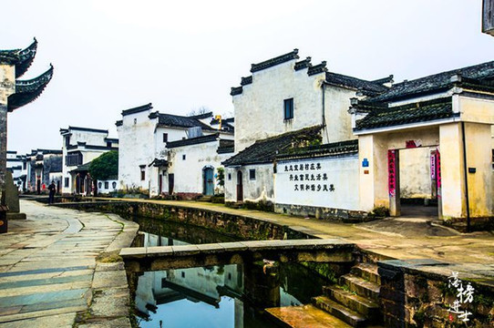 总觉得徽派建筑要有水的滋润才更有味道,一弯溪水缓缓流过,轻轻哼唱着久远悠长的古老歌谣。风景和古村,民宅和人群,相互映衬,相互融合,没有多余的色彩,却韵味悠长。