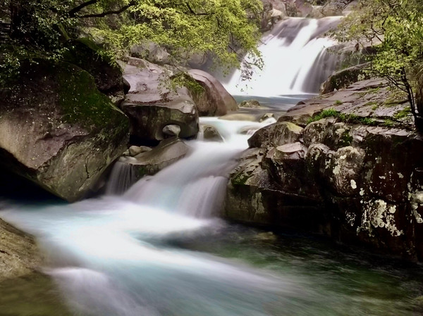 第三站:大鄣山卧龙谷,游玩2小时。北线精华,卧龙谷里春季看:山花烂漫,夏季看:郁郁葱葱,秋季看:红枫尽染,冬季看:冰雕玉砌,景区四季变换不同的色彩,而高山峡谷里更是瀑布成群,飞龙吐玉。这里号称“江南第一奇谷”,徒步游览线路非常简单,只有一条上山的路,在山谷里,顺着溪水逆行而上,路上坡度并不陡峭,走起来还是很轻松的,一路上经过卧龙潭、吊桥、七叠泉、水帘瀑、箜篌桥等景点,到快山顶时有一座悬索桥箜篌桥,是景区内最大的一座悬索桥,胆小的游客从这里过去还是比较刺激的,过桥后再走过一段木栈道便到了山顶,山顶的白龙瀑是这里最大的瀑布,落差一百多米,非常的壮观。整个上山时间约1个多小时,下山可沿原路下山,如果不想走路,景区内有索道往返,上下单程50元,单程索道时间约15分钟。建议上山徒步,这样才能领略卧龙谷的精髓,下山可乘索道,俯看卧龙谷的景色。停车费5元,如果开轿车的话建议把车停在游客中心停车场,景区入口停车场场地不平整。从车田村至景区道路维修。