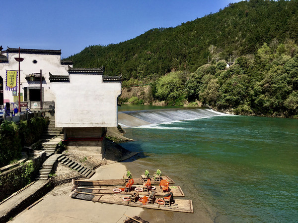第五站:汪口,游玩1小时。主要景点:除了古朴典雅的一经堂、懋德堂、大夫第和养源书屋等古建筑,汪口最不容错过的莫过于东关大桥附近的俞氏宗祠,村口有两棵大樟树和水碓、观景台,往里走就是一条沿着河的古道,汪口几个主要的看点都在路边。从一头走到另一头,基本就能把汪口看个遍了。从俞氏宗祠出来再往前走一点,可以看到被房子遮住的滚水坝,坝的一边水面如镜,另一边激流翻滚,也是很养眼的景观。停车5元。