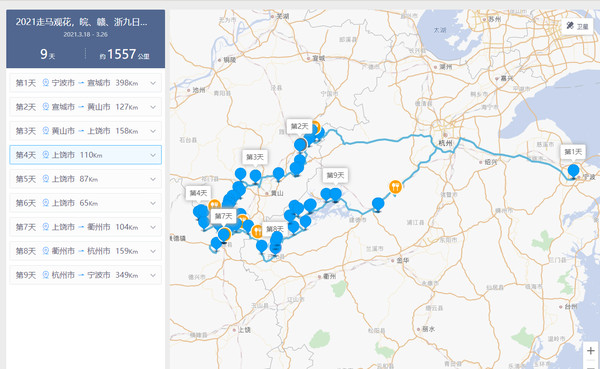 3月26日下午回到宁波,行驶总里程1556公里,二人总费用5599元,其中:耗油95#951元,停车费高速通行费387元,门票景交费1352元。