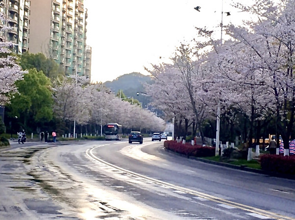 第七站:千岛湖樱花大道,位于阳光路,全长3公里,成片的樱花如云似雪,与千岛湖的景色相互融合,美不胜收。