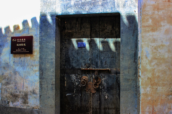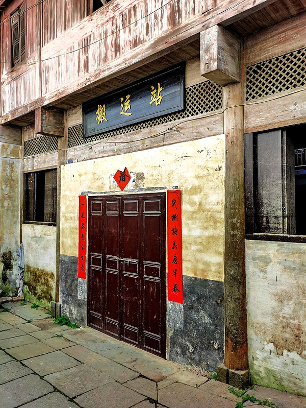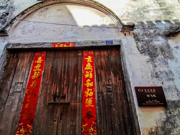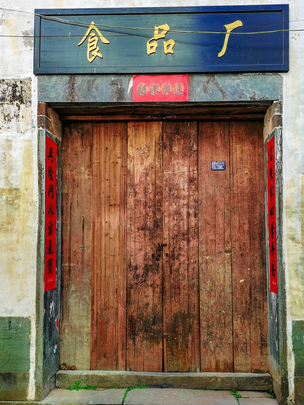 木板门,岁月的洗礼,门的缝隙稀稀疏疏,留守的深渡老街人不忘在门板门上贴着大红的对联。