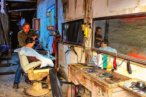 老剃头店,老式推子、折叠剃刀、铁制理发椅、斑驳的大镜片……,我对老剃头店有一种情怀,一直固执地认定老式剃头师傅才是真正的匠人。