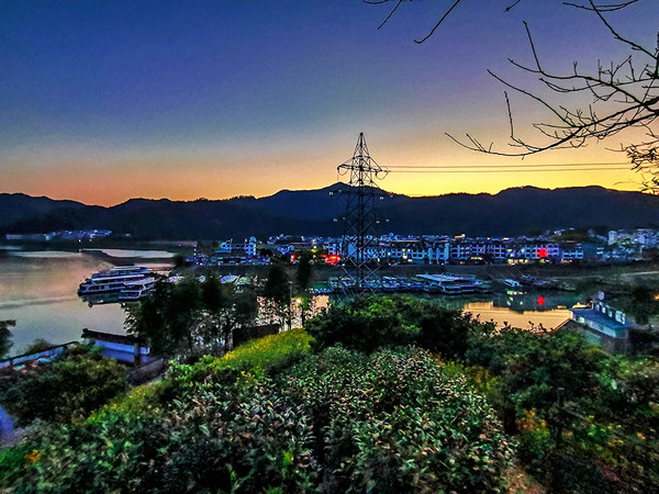 下午5:00爬上深渡老街对岸的山上,山上筑有观景平台,给摄影爱好者提供了拍摄凤凰岛的理想场所。
