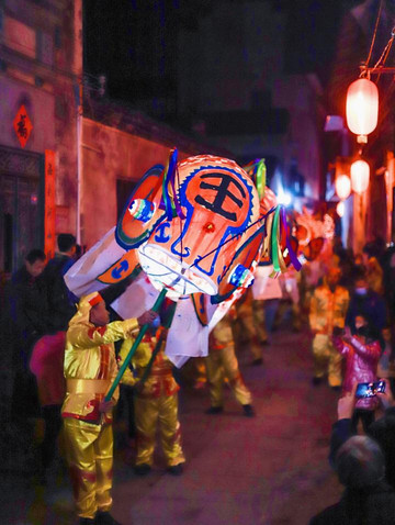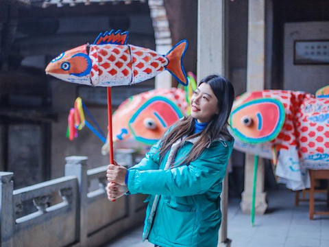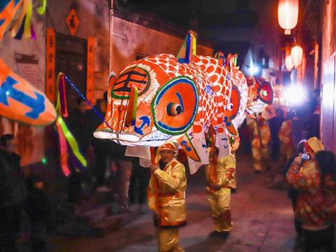 有幸我们来到瞻淇的时候,在一个古宅里发现村民正在制作大红锦鲤鱼灯,听说晚上村子里会有闹鱼灯,我们果断的留下来,毕竟这也是我第一次感受这样喜庆又独一无二的民俗。大红灯笼高高挂,鱼儿们已经跃跃欲试了,锣鼓响起,鱼儿一条跟着一条,就如入无人之境,随意掀风鼓浪,尽兴起舞,时而转圈,时而斗鱼,喜庆的不得了,真的是迎百福,纳千祥,开心又吉祥啊。