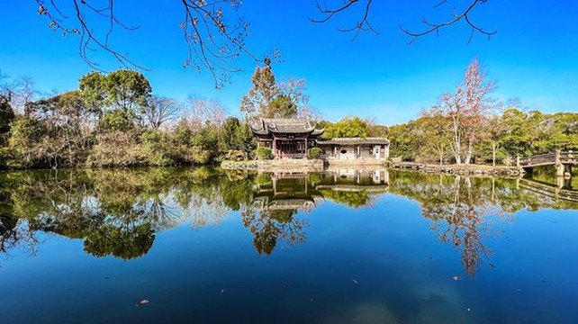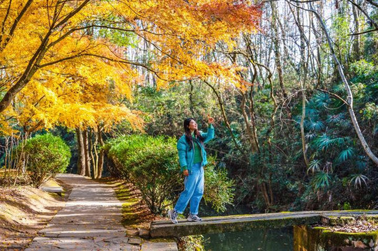 青石板路,小溪流淌,唐模的水街有一种静谧的美,岁月静好,虽然清晨的时候游客不多,但也正是因为这样,才让我觉得融入了这座古朴的小村庄,我突然有一种想要退休以后就在此定居的冲动。另一侧的小西湖也是唐模一个打卡点,这里的颜色已然从绿色逐渐过渡到了黄色、金色和红色,我觉得冬天的唐模更加有古徽州古韵的气质。