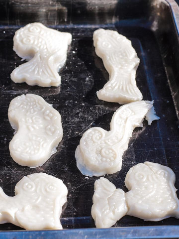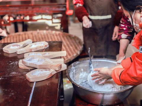 唐模这个名字,可能有些人第一次听说,会觉得是一种模具的感觉,虽然名字并非此意,但也确实,我们在唐模见到了当地有名的米果制作手艺,这也是当地村民逢年过节都会准备的小吃。妇女们热火朝天的将米粉和成团,填进特制模具中塑出造型,磕出后就变成了米饼,将饼上蒸笼蒸熟透就可以吃了,我们可以通过炒、煮、炸、烤等烹调手法来享用米果,但看着眼前这些成品的米果晶莹剔透,胖嘟嘟的可爱无比,真是不忍心下口啊。