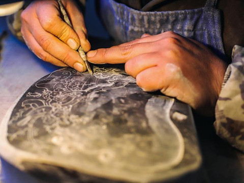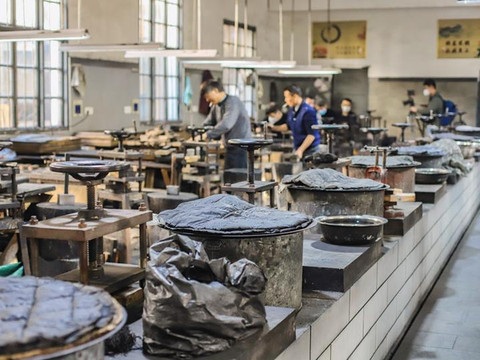 每一道工序,每一分钟,工人们都非常专注,而专注,是制墨制砚的必要能力,我很佩服工人师傅的专注能力,也正是因为工人们的这行云流水的专业和专注能力,隔绝了尘世的喧嚣和浮躁,沉淀着,沉淀着,最终为我们呈现了一个个精美的徽墨和歙砚,流芳百世。