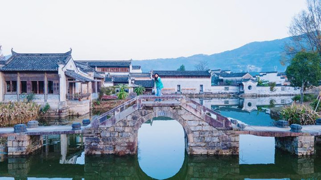 徽州古城在来徽州之前,很多时候我会将自己带入戏,幻想着某天某个时刻,我一脚踏进古徽州的山水国画之中,远处是连绵精致的马头墙,这时走出一位妙龄女子,撑着纸伞,对我回眸一笑,对了,这就是我想象中,徽州的倾国倾城。