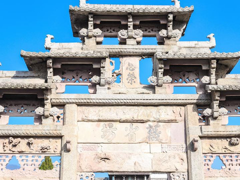 走近这些牌坊,外表看似都差不多,都采用石料,具有严格的中轴对称手法,加上精美的雕刻艺术,不用钉铆,巧妙的将这些石料结合在一起,整体看上去很厚重,千百年不倒。 “慈孝天下无双里,衮绣江南第一乡”,乾隆皇帝当年就给予了高度的赞誉,如今这里也成为我们旅游、学习和历史研究的重要基地。