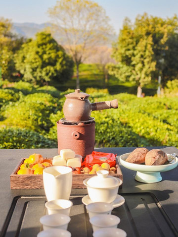 坐着博物馆的观光车抵达后山的万亩茶园,虽然现在这个季节并不是采茶的好时节,但漫山的茶树一排排,坐在这样的人间仙境里围炉煮茶,用博物馆为我们准备好的茶具和火炉,在这旷野里,不仅仅只是一次聚会或者度假,茶文化的氛围感拉满了,那就好好思考一下茶与人生吧,不过来这边茶山喝茶要提前预约的哦。