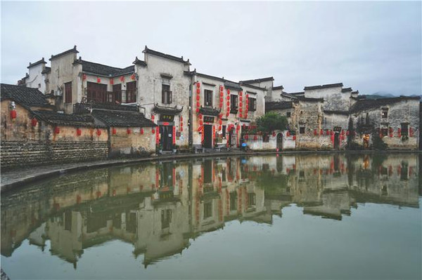 宏村村落,选址一般是按照阴阳五行学说,并且经过周密观察周围自然环境,是自然环境和人工的完美结合,比如月沼,就是当年人工开挖的。