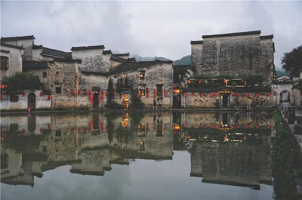 如果你喜欢宏村,那不妨在月沼这里安静的坐一会儿吧,等到暮色四合,等到月沼的红灯笼次第亮起,当水墨色的白墙黑瓦倒映在水面上,红灯笼的亮光,散发着温润的光芒,这就是一幅浓淡皆宜的山水画卷,百读不厌。