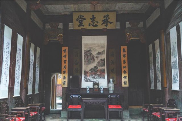 承志堂建于清末咸丰五年(1855年),是大盐商汪定贵的住宅村中最大的建筑群,占地约2100平方米,内部有房屋60余间,围绕着九个天井分别布置。正厅和后厅均为三间回廊式建筑,两侧是家书厅和鱼塘厅,后院是一座花园。