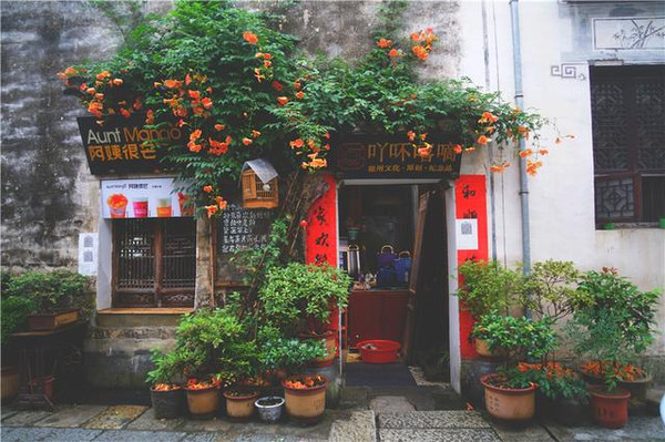 一家文艺范儿的小店,一个落雨的六月,那年年盛放的凌霄花开的依然灿烂,曾经和我并肩走过宏村的那个人老朋友,也在清真岁月中,一直不离不弃,还有比岁月静好让人觉得更心安的事情吗?