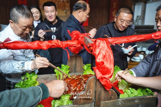 今天中午的大餐很特别,是 黟县 当地古村节庆都 会安 排上的特色宴席——杀猪宴。其实多多少少 中国 的很多地方都有这样的习俗,只是猪肉的做法会略有不同。第一次看杀猪宴的我们,也是激动不已。