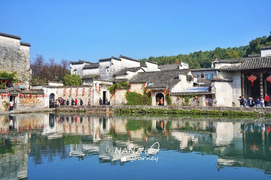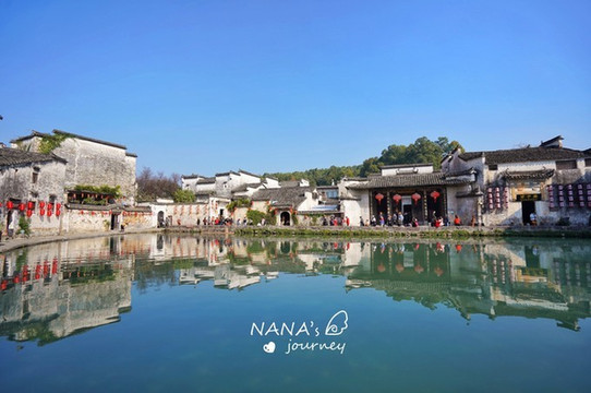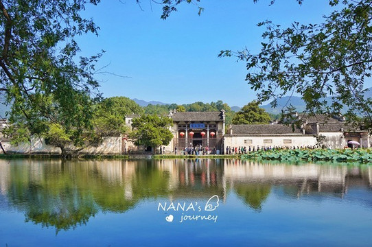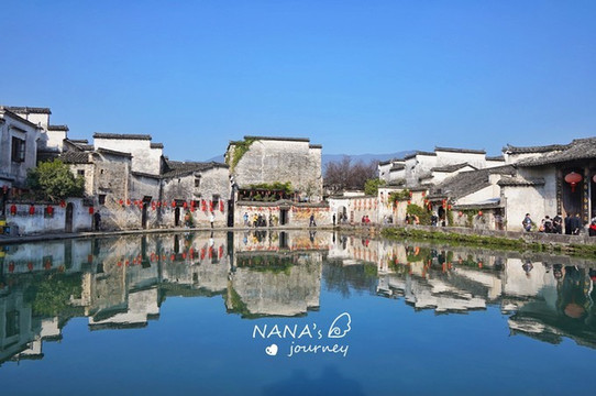 位于宏村最中心的月沼是另一大特色,不管走哪条稍微大点的巷子,最终都能到达这里。而月沼四周都是围绕着最美的徽派建筑,这里的镜面倒影也成了摄影师必拍的景色之一。
