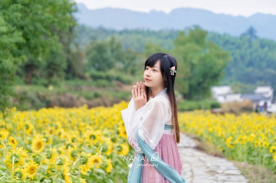 来一波向日葵美照吧,原本穿汉服是想拍古建筑的,现在倒是也和向日葵非常的搭呢~比起秋色,可能现在是向日葵更适合少女之心。