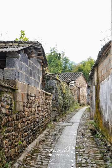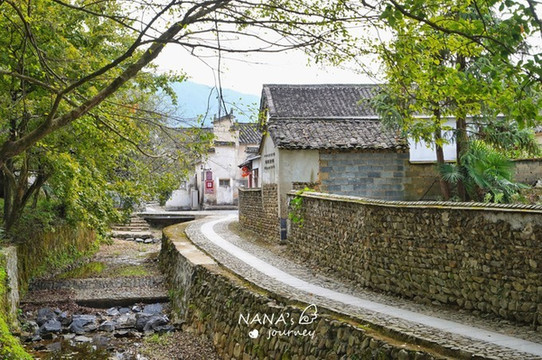 我们今天的目标是卢村最有名的木雕楼,所以从小溪流这里我们要转入卢村的深处,一路走着石板路,顺溪流而上。