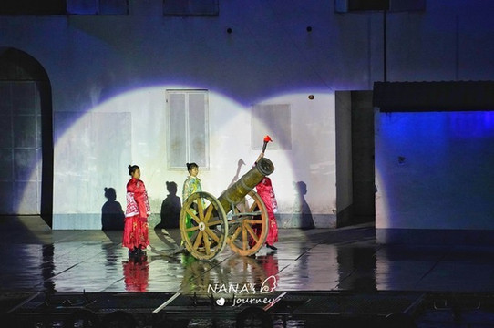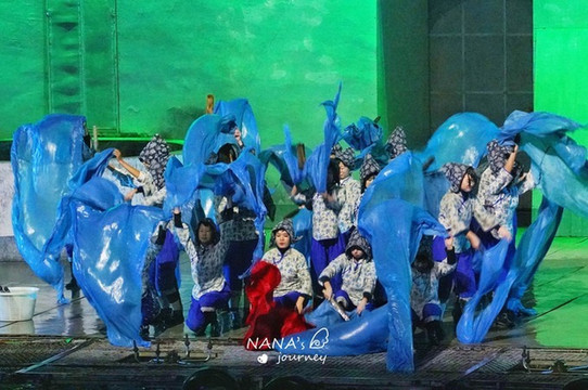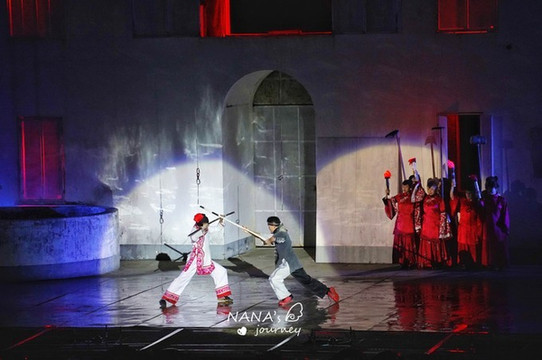 第 三出 故事讲述了强盗袭村,阿菊带领村中的女人们顽强抵抗,保卫家园,也反映了当时 徽州 女人的勇敢和坚强。这场表演热血沸腾,爆炸、喷火,高空跳水,看的我们惊喜连连。